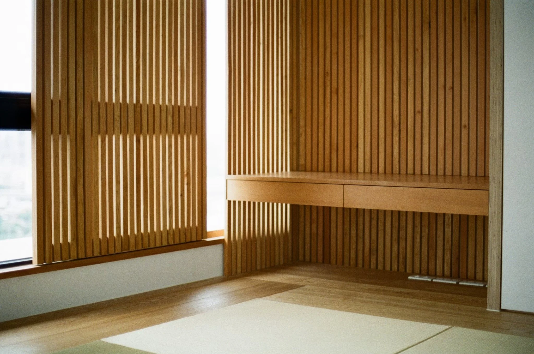 木構樑柱、開放層架與格柵元素,延續日式建築的秩序感,同時保留現代居家的機能彈性。