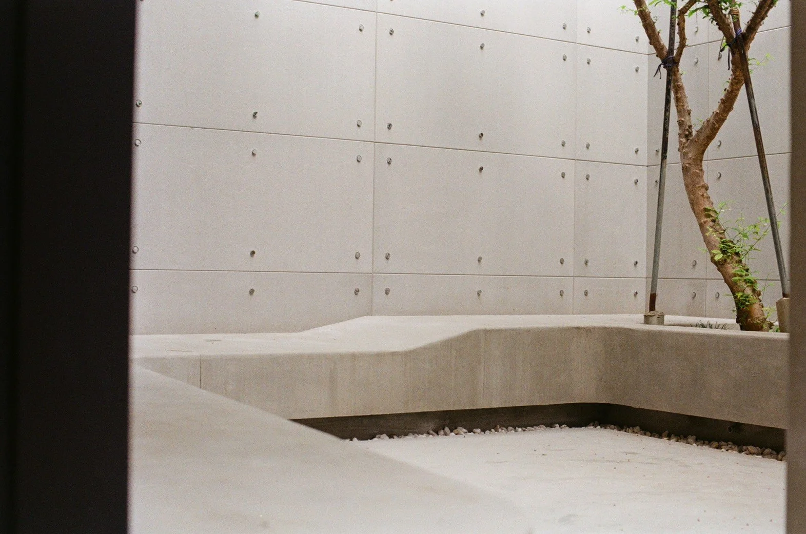 搭配低水池與簡潔混凝土池體,形成一處靜謐而內斂的家庭風景。