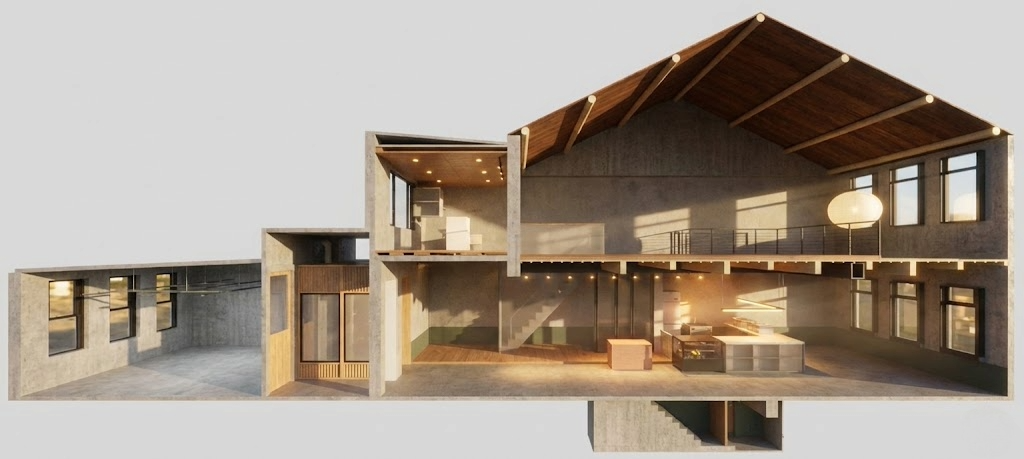 原有空間結構老舊、動線狹長,天花與設備雜亂,難以停留。在拆除過程中,設計團隊選擇保留木造樓地板與天花板結構,打開原本被遮蔽的高度,形成自然的挑高空間。